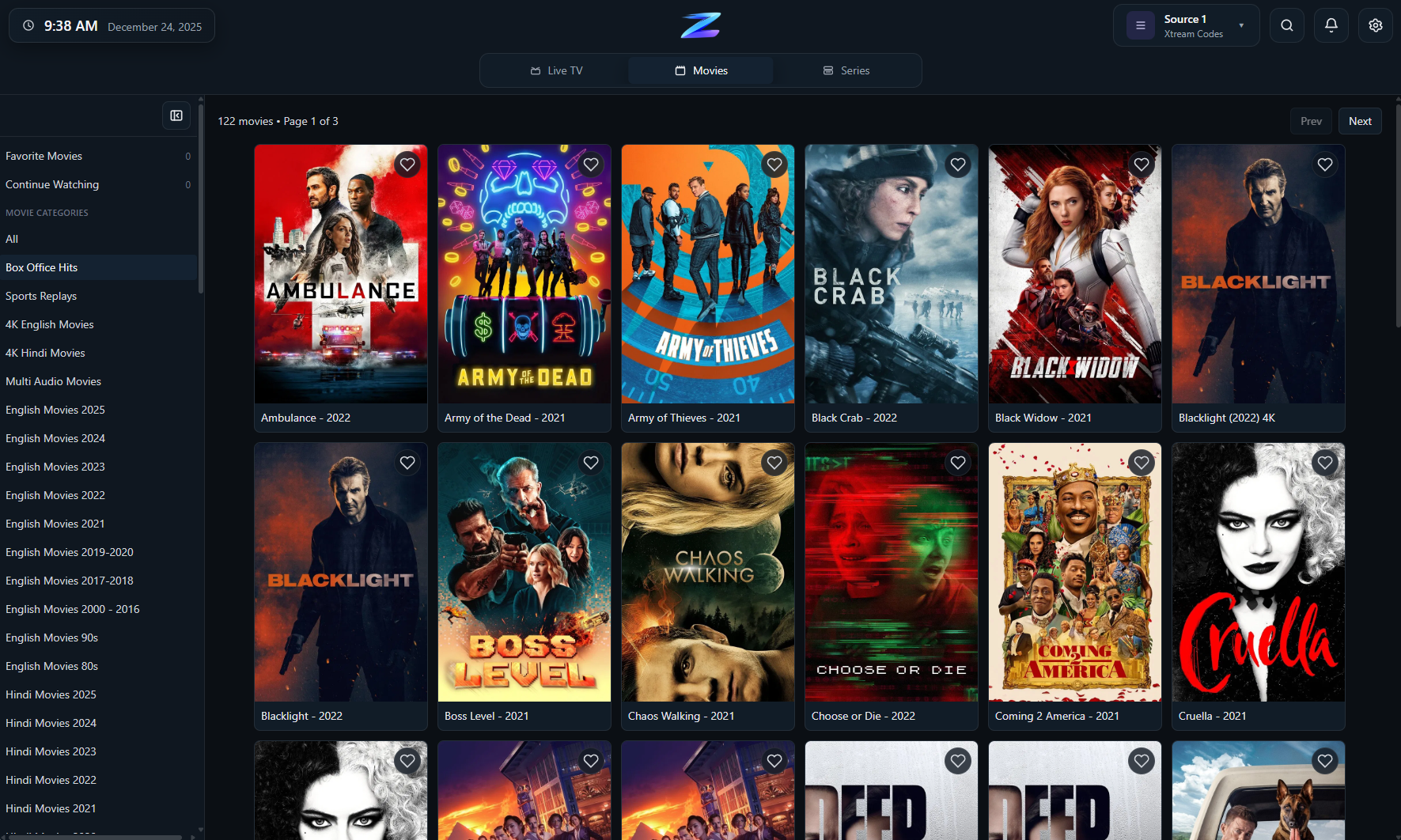 IPTV Player Zero is a modern IPTV player for Windows 10/11 built for smooth playback and a clean, TV-first experience. Import your own playlists and watch Live TV, browse Movies, and continue Series—all with a responsive UI and a native-performance playback engine (mpv).